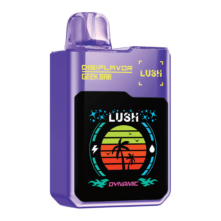 Take control of your vaping experience with the Geek Bar Digiflavour Lush Disposable’s adjustable airflow and two distinct modes—Regular Mode for a balanced session or Dynamic Mode for a harder hit, and bolder flavour. A simple switch on the underside lets you adjust settings effortlessly, while the vibrant mega screen comes alive with dynamic animations, displaying your chosen mode in style.